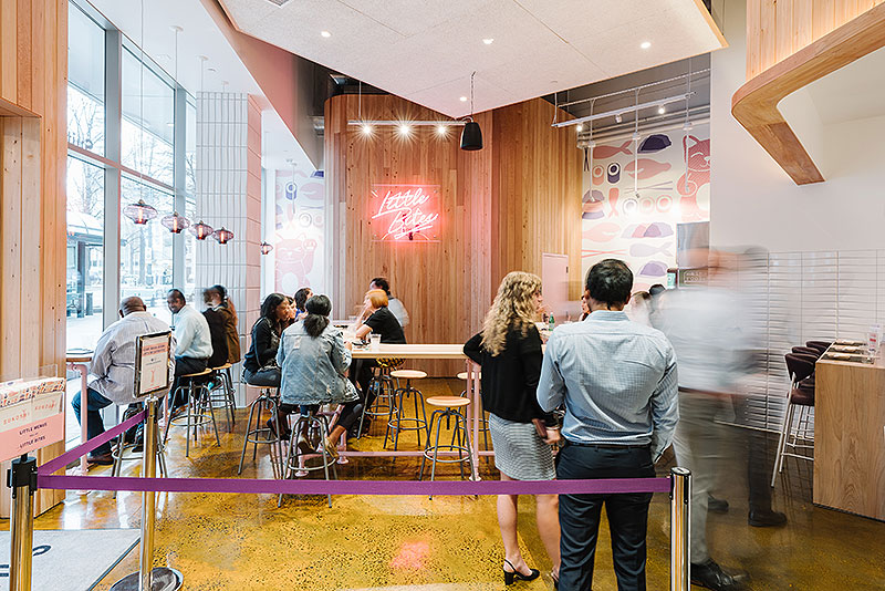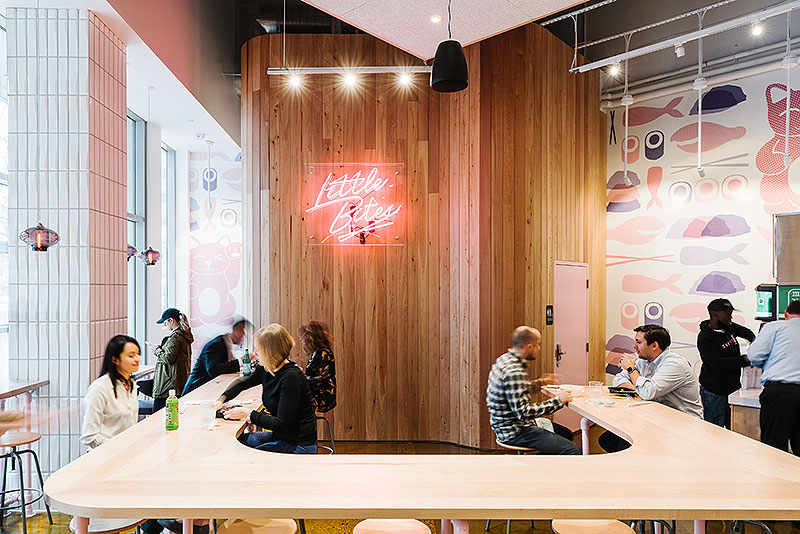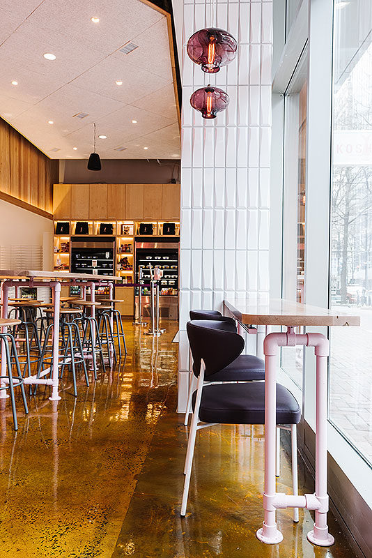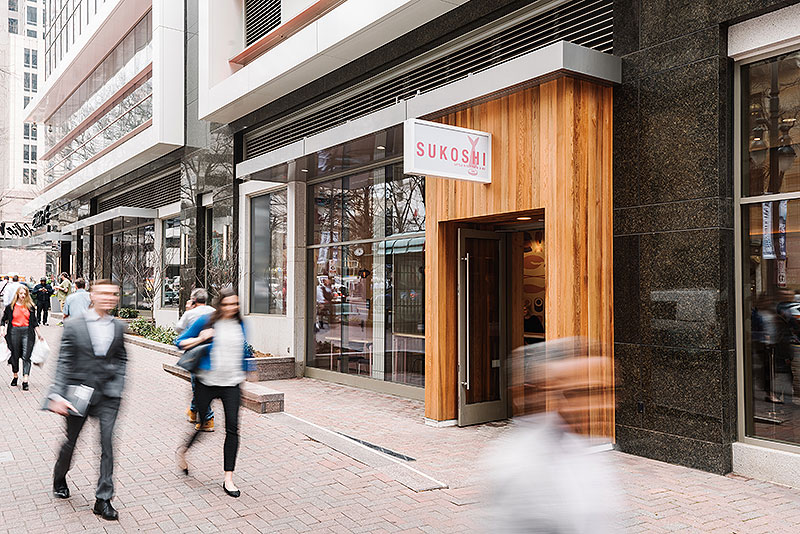 SUKOSHI. Hospitality, Interior Build Out, 101 S Tryon St Suite 120, Charlotte, NC 28280. COLLABORATORS: Ratzlaff Construction, Proficient Engineering, Inc., Mobile Fixtures, Treebird Branding. Photographs courtesy of Andrew Thomas Lee